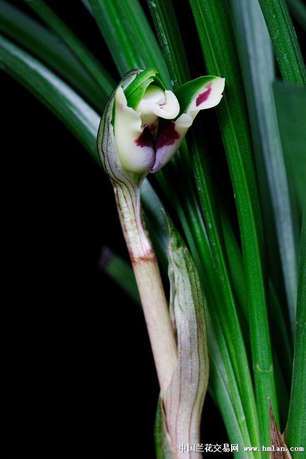 冠蝶历史:三十年代无锡沈渊如选出,具有五瓣宽阔,分窠,副瓣前端唇卷,二分之一以上唇化,缀有稀疏点块,蚌壳捧,大圆舌等特征。