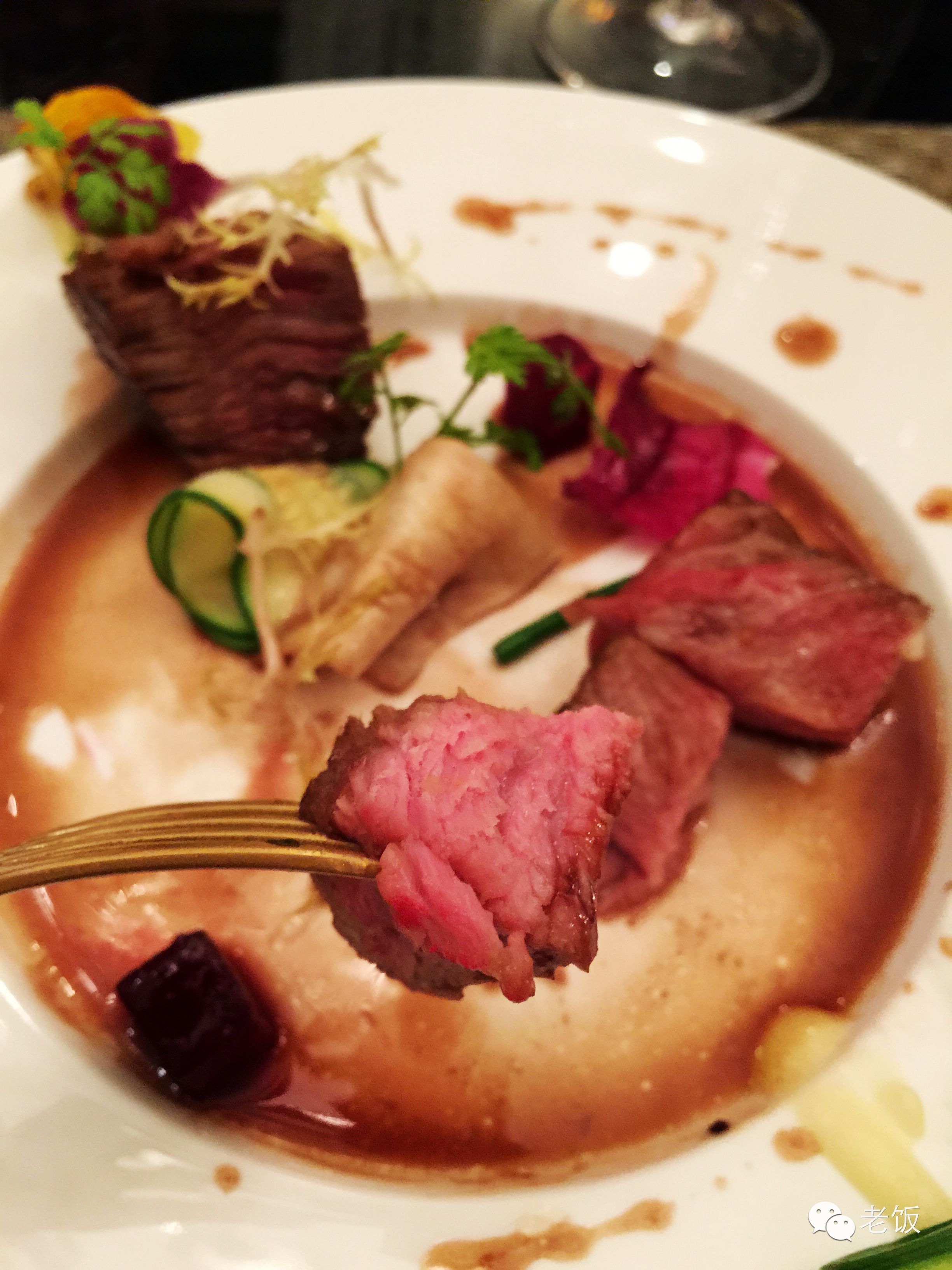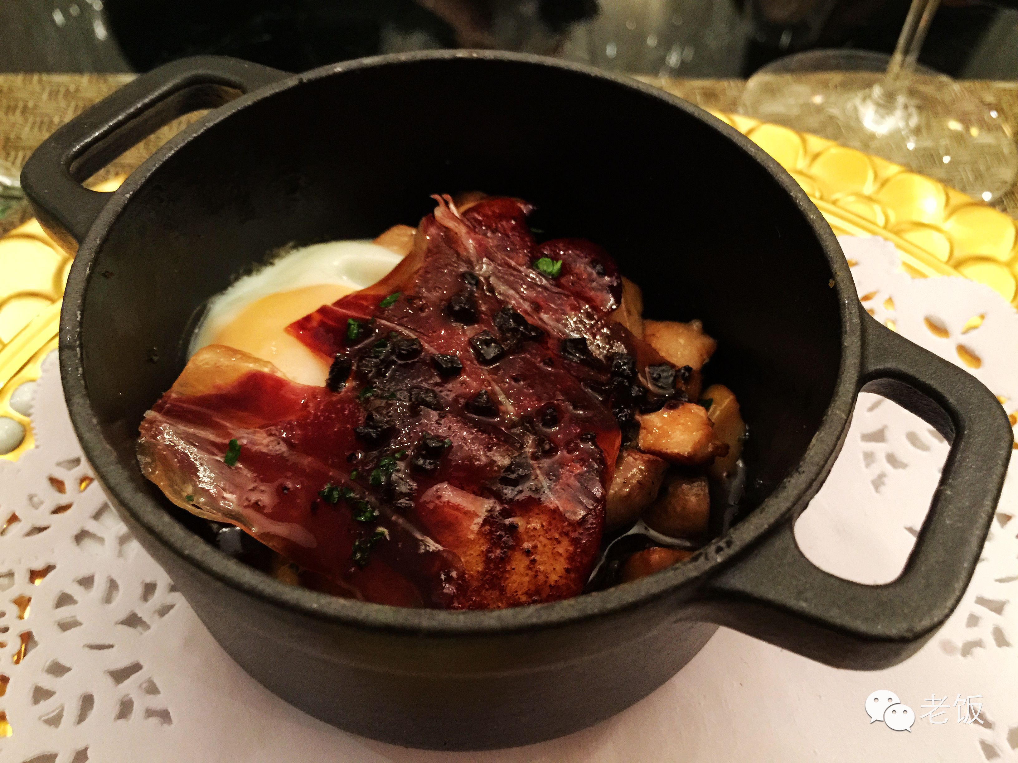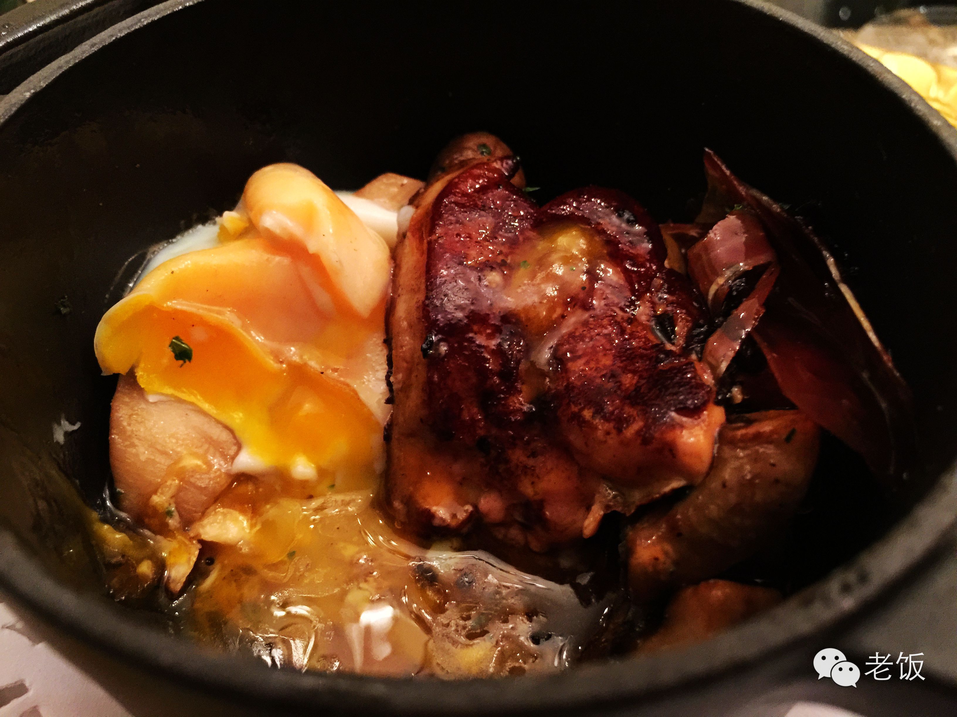 另一道较有特色的是鹅肝,溏心蛋和火腿的组合,大厨使用了内部恒温的铸铁锅作为容器,锁住了食材的水分,避免食材变柴变干。由松露制成的PerigourdineSauce给味觉平添了几分贵气。