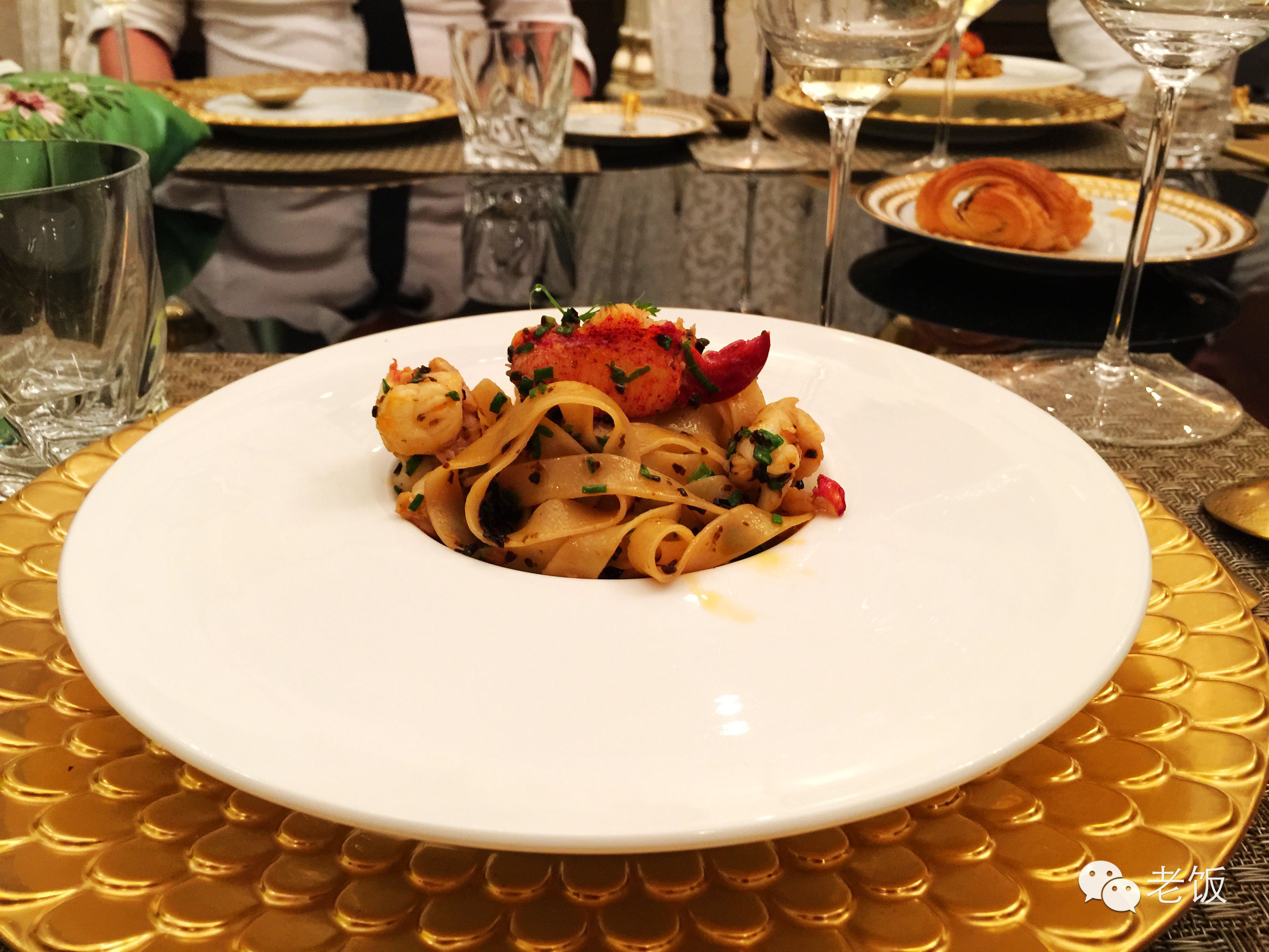 个人排行第二的是波士顿龙虾意面。龙虾的新鲜程度就不赘述了,这道面的特色在于提前三天熬制的龙虾油,除此之外,ChefLing在里头还混合了一定比例的花椒油。原以为意面上黑色的末末是炸过的油葱,实际却是提鲜的昆布。