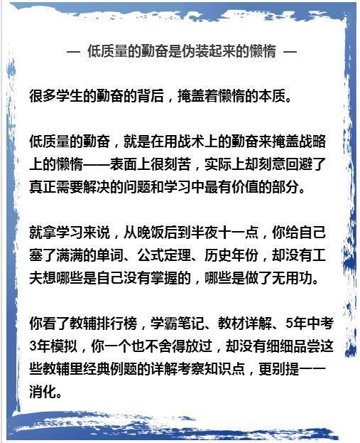 这是很多同学都犯的一个思想误区,也可以说是在做无用功过,也可以说是低质量的“勤奋”。可以说这远比懒惰更可怕。