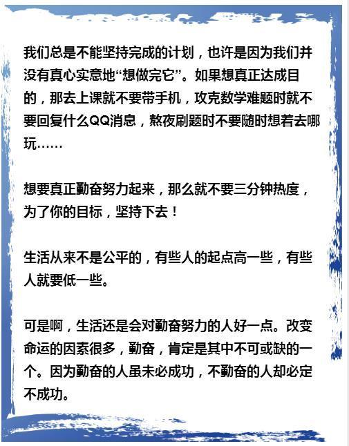 记得有人说过这样一句话:勤奋的人未必成功,但不勤奋的必定无法成功!这样的事实道理相信已经是在烂熟于心。