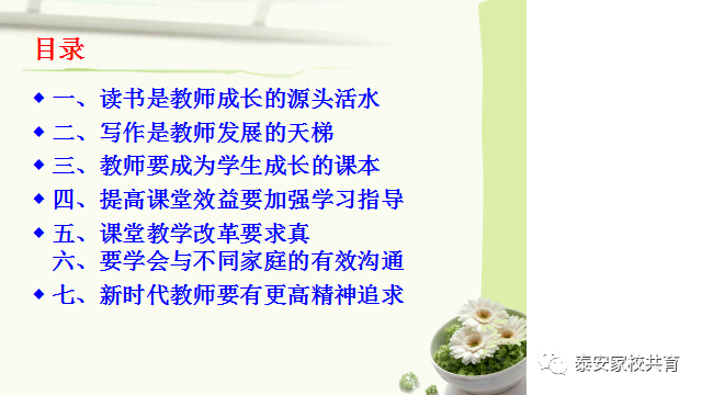 8月26日上午,高新区凤凰小学举办新学年开学教师集中学习活动,活动邀请原泰安市政府督学、教研室主任阚兆成做了《新时代教师要有更高精神追求》的报告,报告分七个部分一、读书是教师成长的源头活水;二、写作是教师发展的天梯;三、教师要成为学生成长的课本;四、提高课堂效益要加强学习指导;五、课堂教学改革要求真;六、要学会与不同家庭的有效沟通;七、新时代教师要有更高精神追求。
