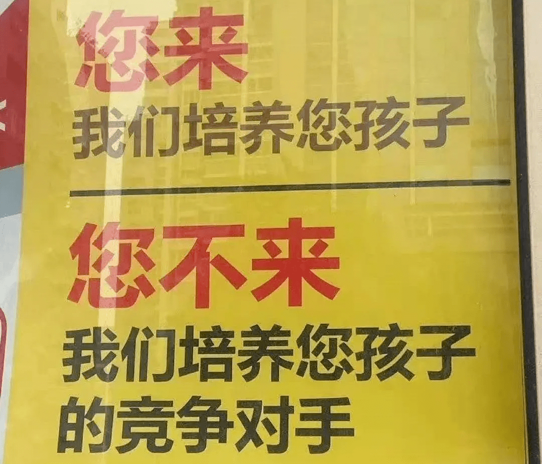 你来,我们培养你的孩子;你不来,我们培养你孩子的竞争对手;