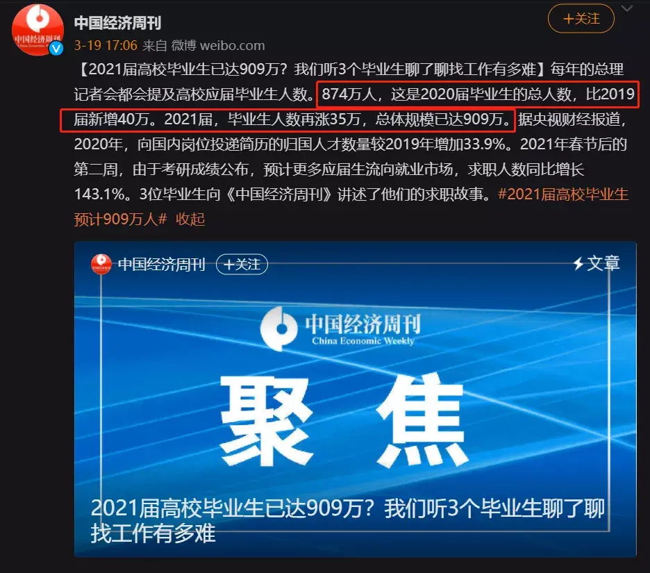 随着这些年大学的不断扩招,每年大学毕业生数量都在飞速增长。