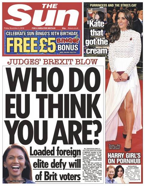 除了英国政府,对这个裁决不服的还有那些在5月公投时鼓吹脱欧的媒体。
