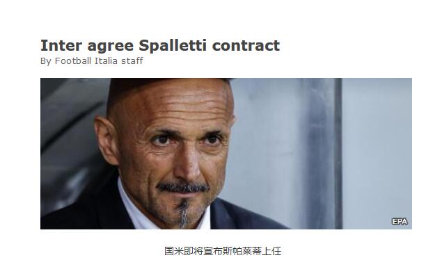 国际米兰斯帕莱蒂引援苏宁集团 |