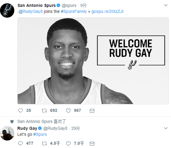 眼看着球员市场上的大牌球星们,都纷纷有了新去处,唯独盖伊是迟迟没有动静。除了稍早之前雷霆中锋坎特在自己的个人社交媒体上爆出盖伊将要前往俄城的消息之外,便没有任何实质性的消息,盖伊的下一站到底是哪,一直是大家关注的焦点。如今马刺队在这场盖伊争夺战中笑到了最后,马刺和盖伊本人都官方发表了声明,接下来的两个赛季里,盖伊将会披上马刺的战袍。