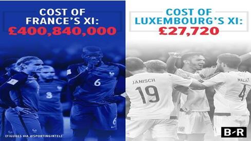 卢森堡作为欧洲赛区公认的送分童子,球队当中一大部分球员都是业余,与法国队格里兹曼、勒马尔、姆巴佩、博格巴、拉卡泽特这些巨星相比,简直是天壤之别。两队之间根本就不需要从实力分析对比,可以毫不夸张的说,法国即便派出青年队出战,赢球也是板上钉钉的结果。