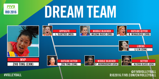 正因为有了朱婷的神勇发挥,才帮助中国女排时隔12年再度登上奥运之巅。里约奥运会朱婷一个人就为中国女排贡献了179分,位居得分榜榜首,接近43%的得分效率,也让朱婷占据着最佳攻手的位置。两项数据独领风骚,外加奥运金牌,朱婷这个奥运会女排赛事MVP拿的实至名归。