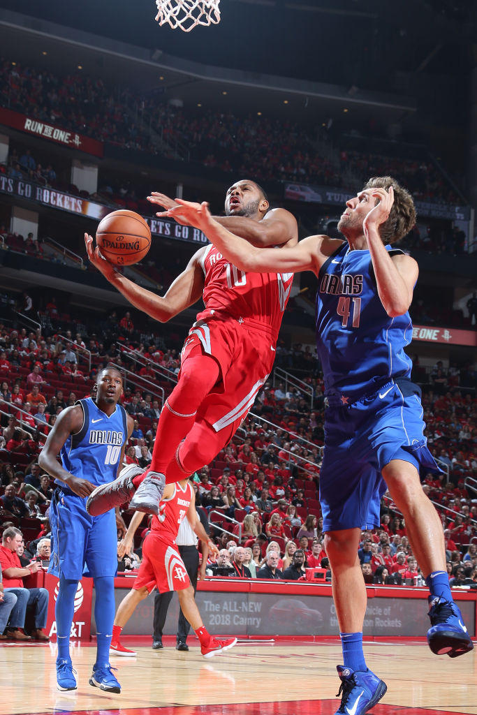 本场比赛面对小牛,火箭队就从一开场展现出强大的攻击火力,首节便以33比20大幅度领先对手,火箭在半场结束时把领先优势扩大到62比39,基本上提前两节就将比赛悬念终结。到了下半场,休斯敦人依旧是保持巨大的领先优势,三节战罢,火箭以9比58领先34分,比赛提前进入垃圾时间。也正是得益主力球员们打下的优势,中国球员周琦终于在本场与小牛队的比赛中,正式完成了自己NBA生涯的首秀。