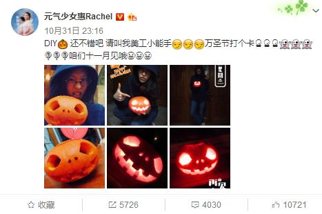 昨日西方的万圣节,惠若琪就在个人社交媒体发布一组她自己制作南瓜灯的照片,并配文"还不错吧,请叫我美工小能手万圣节打个卡,咱们十一月见哦”。从照片看得出来,惠若琪告别赛场上的日子过的是多姿多彩,制作出来的南瓜灯还是相当有模有样,算得上一位心灵手巧的好姑娘。