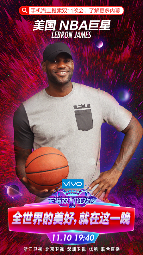 一年一度的剁手节即将到来,为了营造出“双11”全民狂欢购物的氛围,阿里集团近些年都会在双11节前夕举办大型的晚会,并且邀请各个领域中的顶级大牌来到现场助阵,以此來将活动推向高潮。今年的双11晚会同样是大牌云集,除了吴亦凡、李宇春、章子怡等巨星将亲临现场外,莎拉波娃、菲戈等体育圈的名流也将共襄盛举。当然最令所有体育迷感到意外的是,今年的双11晚会上,居然出现了NBA巨星詹姆斯的名字。