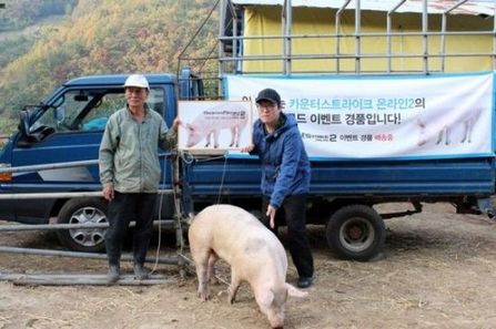 韩国CSonline冠军Yoon Hee Wook,居然在赛后获得主办方赠送的分量十足的奖品。那就是一头货真价实的猪,不得不说,能想到用猪做奖品,真是脑洞大开。