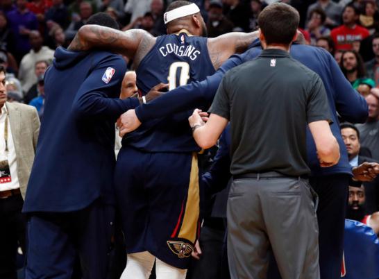 在比赛最后时刻,考辛斯在无对抗的情况下痛苦倒地。根据NBA知名大神woj的爆料和其它多家媒体证实,考神左腿跟腱撕裂,赛季基本上可以宣告报销。