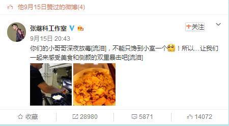 众所周知,张继科除了运动战绩十分辉煌外,他还是一位酷爱厨艺的人,平常一有空就会自己下厨做饭,算上烧的一手好菜。在他的个人社交媒体上,经常也能看到张继科下厨的成果。看来咱们的女神景甜,今后的日子是有好口福了!