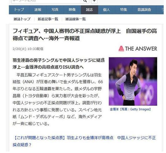 近日,根据日本媒体的报道,在本届平昌冬奥会男子单人滑比赛中,中国裁判疑似给中国选手金博洋打出高分,故意给其它几位主要竞争对手,比如银牌得主宇野昌磨、铜牌获得者西班牙选手费尔南德兹打出了几名裁判中间的最低得分,明显偏袒中国运动员的消息,成为媒体和观众注视的焦点。