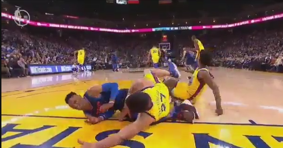 最臭名昭彰的一次,就是在去年西部决赛中,故意垫脚废掉了马刺核心莱昂纳多,从而让勇士轻松的晋级到总决赛。
