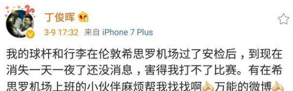 2018年斯诺克直布罗陀赛激烈进行中,本应该作为赛会头号种子的丁俊晖,却没有现身赛场,根据官方的消息,丁俊晖因为在赛前发现球杆丢失,只能无奈退出了本届赛事。而在昨日,丁俊晖也在自己的个人社交媒体上证实这一消息,并且向广大的网友寻求帮助,希望大家可以一起帮他找回心爱的球杆。