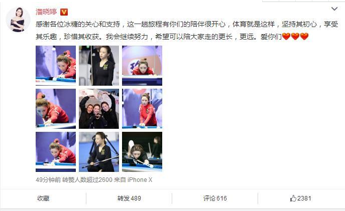 昨日,刚刚结束了2018年世界女子花式撞球锦标赛征程的九球天后潘晓婷,在个人社交媒体上发布了最新动态。有着中国体坛最美一姐美誉的潘晓婷,对所有支持她的球迷表示感谢。