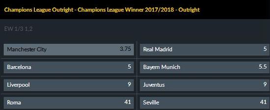 随着本赛季欧冠联赛8强正式产生,哪支豪门可以笑道最后称霸欧罗巴,成为大家关注的焦点。根据目前各大博彩公司所给出的数据来看,英超老大曼城成为夺冠的最大热门。本赛季的欧冠赛场上,蓝月亮军团比起卫冕冠军冠军皇马,宇宙之师巴萨、德甲霸主拜仁,意甲老大哥尤文等强队,看上去更具有冠军相。而且从外部环境来看,曼城也已经具备夺冠大耳朵杯的一切条件。
