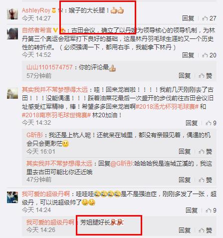不过也有一些网友的留言,则是完全改变了画风,他们完全是被林丹爱妻谢杏芳的大长腿所吸引,纷纷留言表示“芳姐的腿好长”!!!