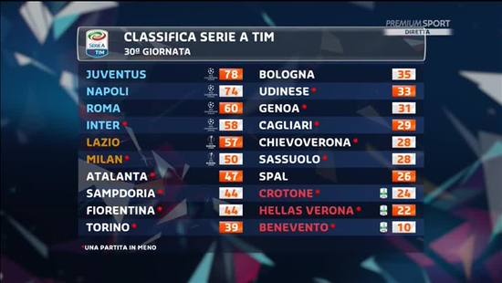 不过对于那不勒斯来说,他们还是有机会,只要在剩余的8轮联赛中保持全胜,或许将完成对尤文的大逆转,球队也将时隔17年之后再度捧起意甲冠军奖杯。