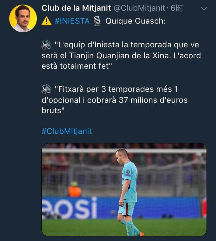 根据西班牙加泰罗尼亚媒体的证实,伊涅斯塔将会在本赛季结束后,彻底告别效力长达16年之久的巴萨。他将选择远赴中超淘金,并且这位巴萨功勋已经找好了新东家。据悉伊涅斯塔将会和天津权健签订一份为期3+1的合同,其年薪达到惊人的3700万欧元。如果这笔交易是真的,小白将会超越内马尔、梅西、C罗等巨星,成为世界足坛史上最高薪的球员。