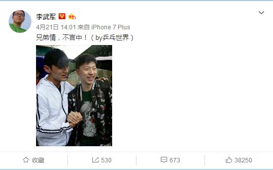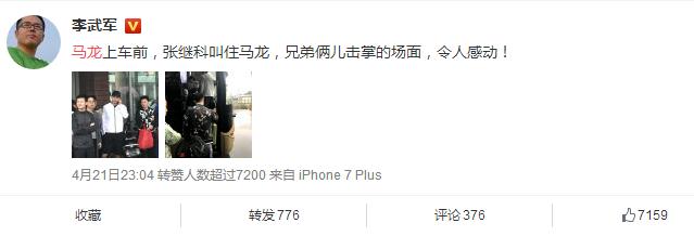 乒乓球专项记者,李武军则是从另一个角度来解读出征前中国乒乓球队融洽的氛围。此次无缘世乒赛大名单的张继科,昨日也出现在送行的队伍中,并且是在马龙上车前,叫住马龙与他击掌话别。这场面是相当温馨,也令人感动。