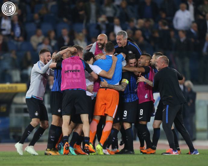 在罗马奥林匹克运动场,国米的将士们用自己实际行动和血性,向全世界宣告,他们拒绝复制16年前国米前辈们在这块场地上所留下的伤心泪水。这一次,失败苦涩的泪水留给拉齐奥自己去品尝,蓝黑军团则是硬气的站在对手的头上高呼:“欧冠,国米来了!!!”