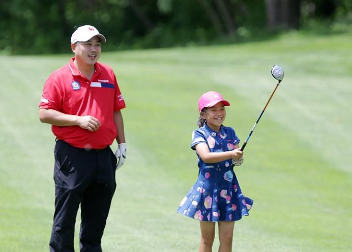 在本月初,刘宇婕更是在她8岁生日的这天,在GA高尔夫巡回赛少年组中,一路遥遥领先,在两天36洞的比赛中,刘宇婕打出了164杆,以领先第二名34杆的成绩轻松夺冠。而刘国梁则是作为女儿的球童,在赛前陪女儿练习,准备午饭,比赛时跑前跑后拎包指导。