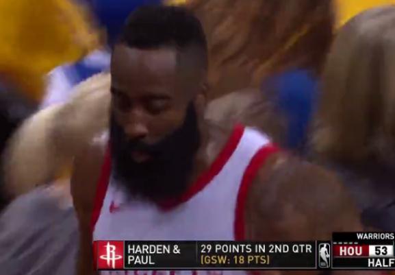 整个上半场,神游完的哈登暴走轰下24分,帮助火箭反超勇士7分,大胡子今天厉害了!!!