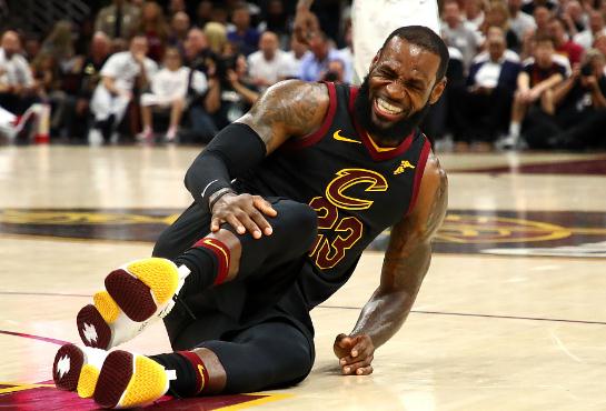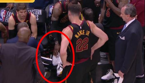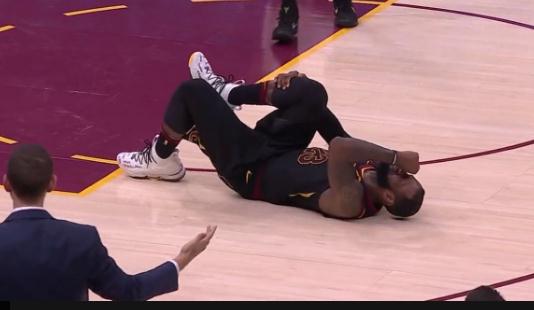 为了能够帮助骑士拿下这场生死之战,已经浴血奋战达到40分钟的三旬老汉,在一次奋不顾身拼抢篮板球的时候,被队友误伤痛苦倒地。