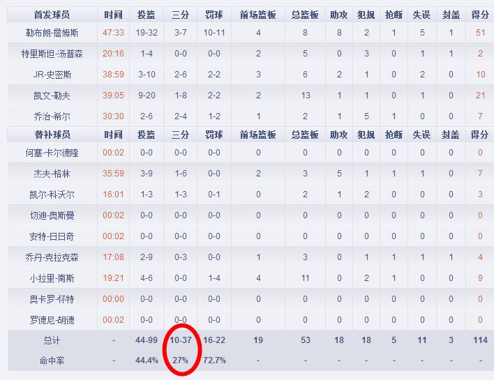 骑士的本场输在三分线上,简直就是火箭西部抢七大战的翻版。那场比赛中,休斯敦人之所以会被勇士击败,最主要的一点,也是球队惨不忍睹的三分球表现。