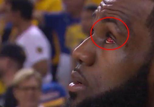 三旬老汉在总决赛期间有了一个新的称号,那就是“红眼詹”。这不是说詹姆斯在总决赛的舞台上杀红了眼,而是实实在在的右眼内充满血块带伤作战。