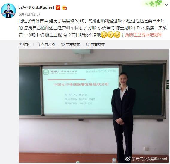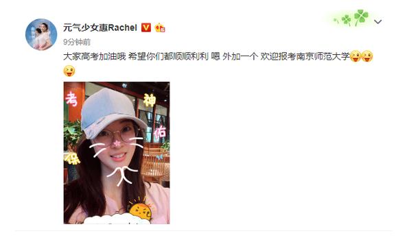 一年一度的高考即将拉开大幕,莘莘学子将要奔赴人生的第一个战场。为了鼓励这些高考生们,排球女神惠若琪在个人社交媒体发文为高考生们打call。惠若琪写到:“大家高考加油哦 希望你们都顺顺利利。嗯,外加一个,欢迎报考南京师范大学。”