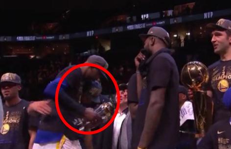 或许就连杜兰特也意思到,这座FMVP更应该颁给库里,他在拿到奖杯的第一时间,就找到库里拥抱。但此时的萌神还是难掩失落,面对杜兰特的热情拥抱,库里把头故意压低,不想要看到那座令人朝思夜想的FMVP奖杯。