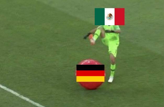 同样是在德国与墨西哥的比赛中,官方记分牌出现乌龙,居然出现德国队3比0领先墨西哥的画面。看来在赛前,就连官方都会认为德国队可以轻松获胜,但事实确实卫冕冠军0比1爆出了一个巨大的冷门。