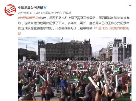 对于墨西哥队的球迷因为自己国家队进球而引发了小规模地震,中国地震台更是幽默的表示,他们已经做好了准备,就在等中国队,是否给他们监测到这样地震的机会了。