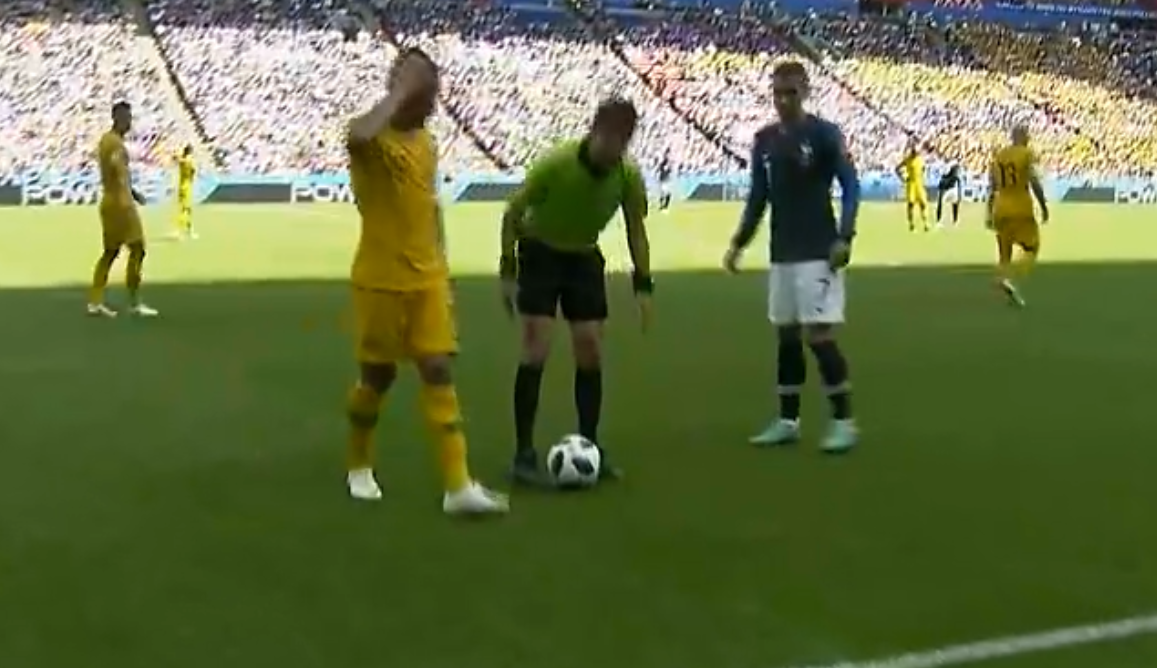 在法国与澳大利亚的比赛中出现了有趣的一幕。在比赛进行至28分钟时,双方球员在激烈拼抢过后,突然停止了争抢。原因竟然是球爆了,裁判立刻示意更换比赛用球。而本届俄罗斯世界杯用球是中国制造,不知道这样一幕会不会让生产用球的中国企业感到尴尬。