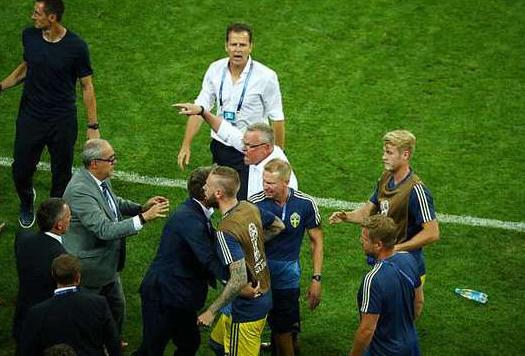 由于德国队教练组的这一不理智举动,险些爆发两队在赛后的大规模冲突。从观感上来看,德国队教练组对瑞典队替补席做出挑衅举动,实在是有点小人得志的意味。毕竟本场比赛,德意志战车赢得是如此的侥幸。