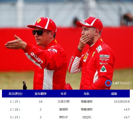 对于法拉利来说,本站比赛完全可以第一第二名带回的比赛,却因为自身失误和令人反感的让车指示所造成一场大败,实在是无话可说。真心希望下一站比赛,法拉利能够给两位车手一个公平的环境。因为就算KIMI给维特尔让位置,德国人也不一定能笑到最后,反倒是拖累整个车队。