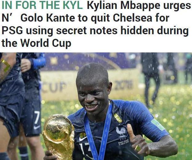 近日法国队的夺冠大功臣姆巴佩在接受《法国足球》专访时,透露了一个他在世界杯期间的小秘密。原来为了能够招揽自己的国家队队友坎特加盟大巴黎,姆巴佩曾往切尔西中场的口袋中放入一张字条,希望游说坎特能够转投大巴黎,与他并肩奋战。