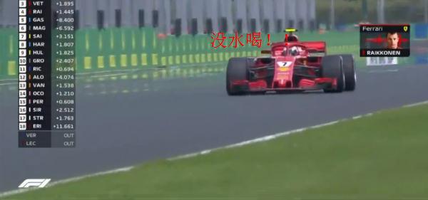 虽然法拉利车队很快给出了答案,原来是莱科宁赛车因为出现饮水系统出现故障,才造成KIMI无法喝到水。但是法拉利车队这样的说法还是显得苍白无力,作为一支顶级车队,居然会犯下如此低级的失误,让自家车手在接近80度的高温中,跑了58圈没水喝,车队怎么样都难辞其咎。