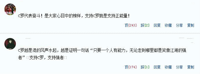 就像有网友所说的那样:“C罗越是混的风声水起,越是证明一句话“只要一个人有能力,无论走到哪里都是笑傲江湖的强者”,支持C罗,支持强者!!!”