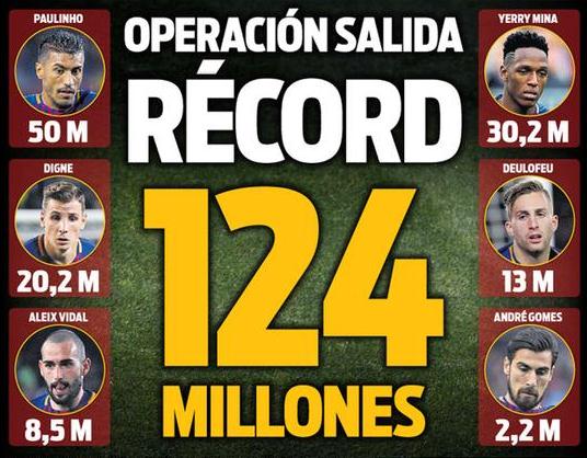 巴萨目前总共送走了六名球员,保利尼奥5000万欧元回归恒大,比达尔850万欧元去了塞维利亚,德乌洛费乌1300万欧元卖给沃特福德、再加上米纳尔3200万欧元、迪涅2200万欧元、戈麦斯220万欧元的租借费用,三人联手转投埃弗顿之后,巴萨在今夏从这6名球员身上,一共回收了1.24亿欧元的转会费用。而这些球员中,除了保利尼奥是球队的主力之外,其余5人对于巴萨来说都是边缘人物。巴萨在今夏清洗球员方面,做的实在是太出色。