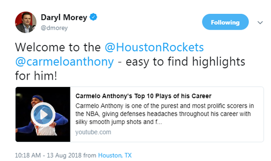 安东尼终于来了!传了一个夏天的“按灯泡”组合终于成型,火箭队红色三巨头正式出炉。在今日火箭队官方宣布,卡梅隆.安东尼正式加盟球队,他与火箭签下一份一年240万美元的底薪合同。随即火箭队总经理莫雷也在个人社交媒体上,发布了他与安东尼签约的照片。瓜熟蒂落,火箭球迷期待许久的小甜瓜,真的下树了!!!