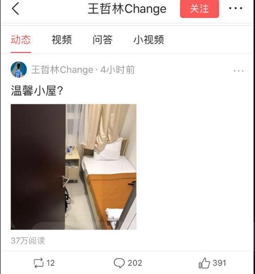 男篮中锋王哲林,在个人社交媒体上晒出他所居住的房间环境,甚至比起宋翔所拍摄到的还要更差。从王哲林赛出的照片可以看得出来,他的这张小床视乎更加的简陋,难怪王哲林为这张配图写道“温馨小屋?”。