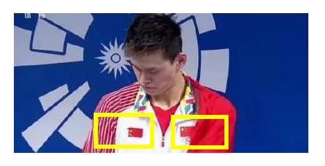 而且为了避免中国代表团官方赞助商的标志在自己身上体现出来,孙杨还特意在赞助商LOGO的位置上贴上一面国旗,在他的领奖服上同时出现了两面国旗。