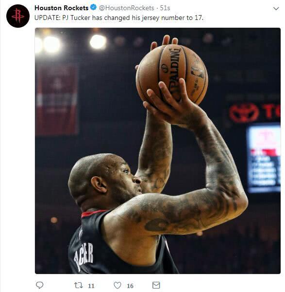 目前暂不清楚塔克为何更换球衣号码,也没有现役其他火箭球员传出要使用4号的消息,但是考虑到塔克之前曾在效力太阳队穿过17号球衣,可以知道17这个数字对于塔克来说,肯定是具有纪念意义。