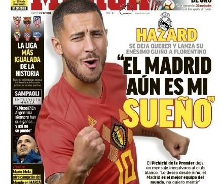 在切尔西与南安普顿的比赛赛后,身为蓝军核心的阿扎尔居然毫不避讳的在媒体面前表达了想要加盟皇马的愿望。阿扎尔说道:“皇马是世界上最好的俱乐部,我不想撒谎,当我还是个孩子的时候,(加盟皇马)就是我的梦想了。我们会看看的,我不想每天都讨论这个事情,我也没有时间,但是我们很快要谈谈我的未来。在我的脑海里,有时候我醒来的时候我就想去,有时候想留下,这是个艰难的决定。关于我的未来,我已经27岁了,一月份我就28岁了。当你有个梦想,你就会希望实现它。我也说过很多次了,如果我离开我会开心,如果留下我也会开心。”